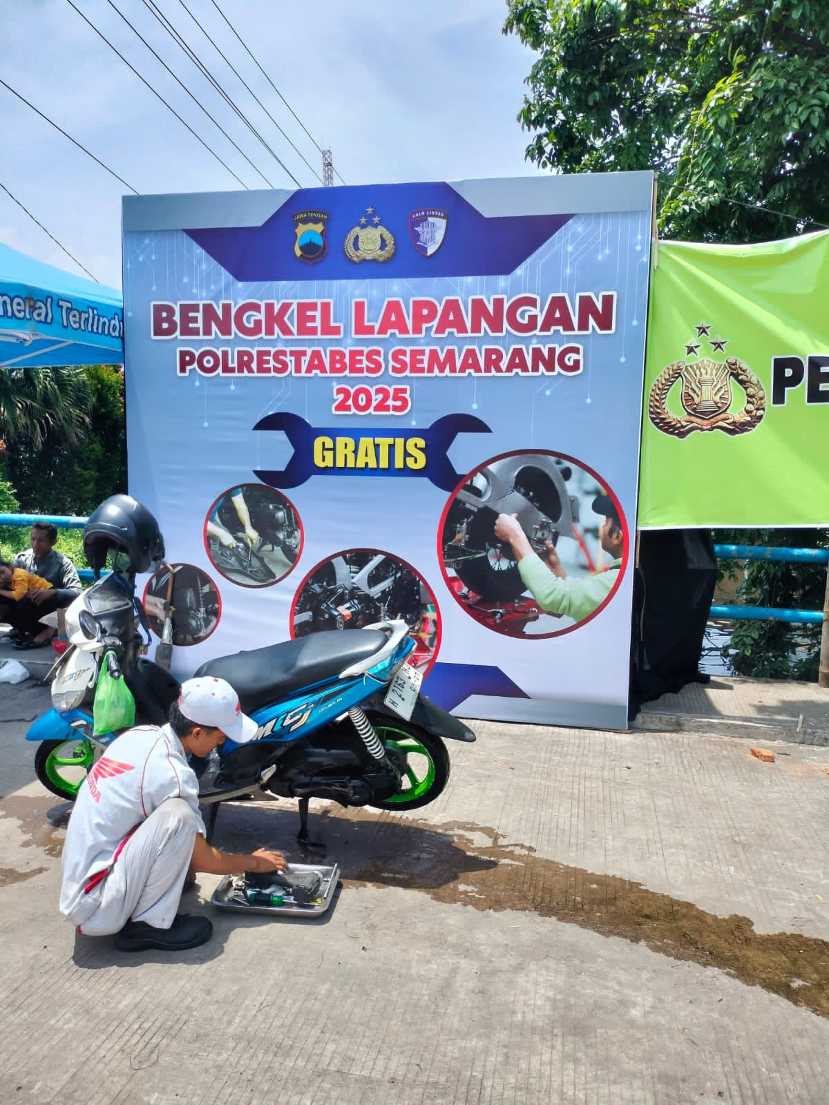 Bengkel lapangan ini berfungsi untuk membantu pengendara roda dua (R2) maupun roda empat (R4) yang mengalami mogok akibat genangan air di wilayah Genuk dan sekitarnya. Lokasi bengkel menyatu dengan Posko Penanggulangan Bencana Alam Polrestabes Semarang yang berada di halaman pabrik White Coffee, Jalan Raya Kaligawe.