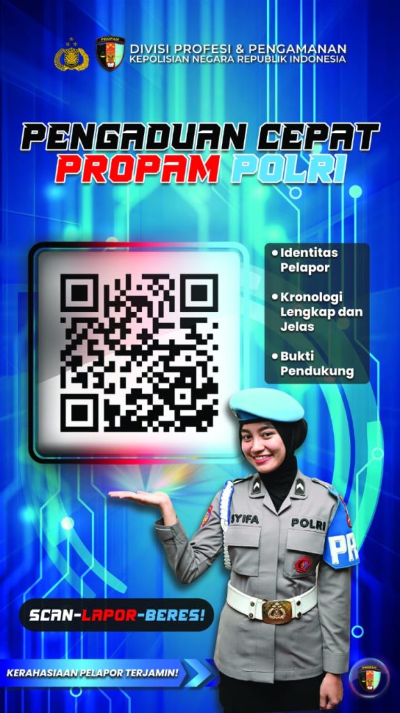 Polda Jateng, Kota Semarang | Dalam rangka meningkatkan kualitas pelayanan pengaduan masyarakat serta memperkuat akuntabilitas dan transparansi dalam pelaksanaan fungsi pengawasan internal, Bidpropam Polda Jawa Tengah resmi mengimplementasikan sarana pelaporan digital Dumas QR Code. Inovasi ini menjadi langkah strategis untuk mempermudah masyarakat menyampaikan laporan terkait kinerja maupun perilaku anggota Polri secara cepat, mudah, dan lebih terpantau.
