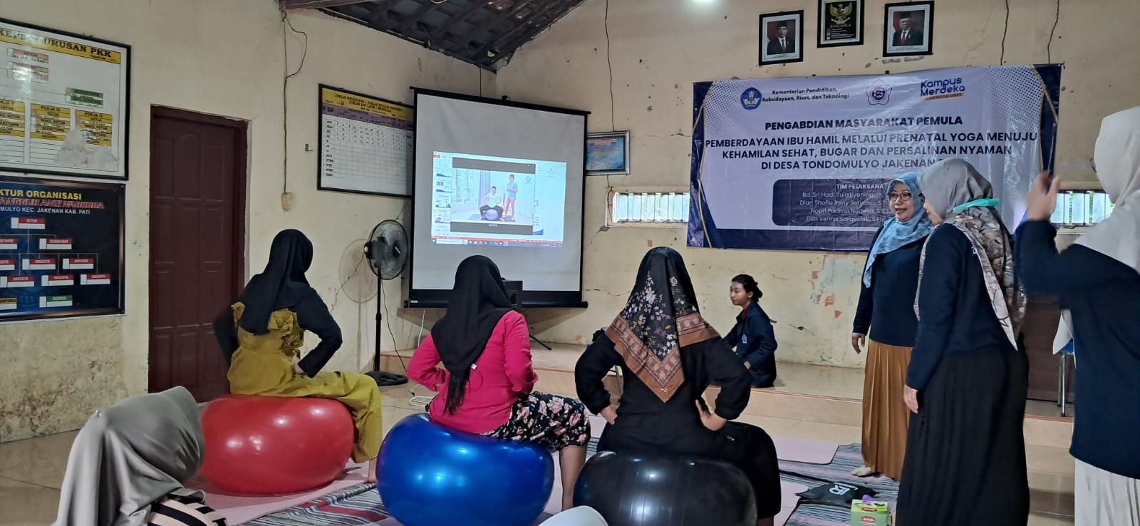 Kelompok Kerja Pos Pelayanan Terpadu (Posyandu) Desa Tondomulyo Jakenan Kabupaten Pati merupakan Kelompok kerja yang tugas dan fungsinya mempunyai keterkaitan dalam pembinaan penyelenggaraan/pengelolaan Posyandu. Sampai saat ini Kelompok Kerja Posyandu di Desa Tondomulyo berperan aktif dalam meningkatkan status kesehatan ibu dan anak seperti pendataan ibu hamil, bayi dan balita. Hasil pendekatan kepada bidan menyatakan bahwa permasalahan yang sering terjadi pada kunjungan ibu hamil adalah 90% ibu hamil mengalami keluhan pada kehamilannya seperti mual muntah, nyeri punggung, sulit tidur, sering buang air kecil, kram pada kaki, sesak nafas, dll. Hal yang dilakukan oleh ibu hamil untuk mengatasi keluhan yang dialami dengan datang ke bidan atau puskesmas untuk mendapatkan obat agar keluhan yang dirasakan berkurang. Dalam kegiatan kelas ibu hamil belum pernah dilaksanakan pelayanan komplementer yoga prenatal sebagai bentuk pemberdayaan diri ibu hamil dalam mengatasi ketidaknyamanan dan persiapan persalinan karena belum ada tenaga terlatih sebagai fasilitator dalam memberikan pelayanan prenatal yoga pada ibu hamil.