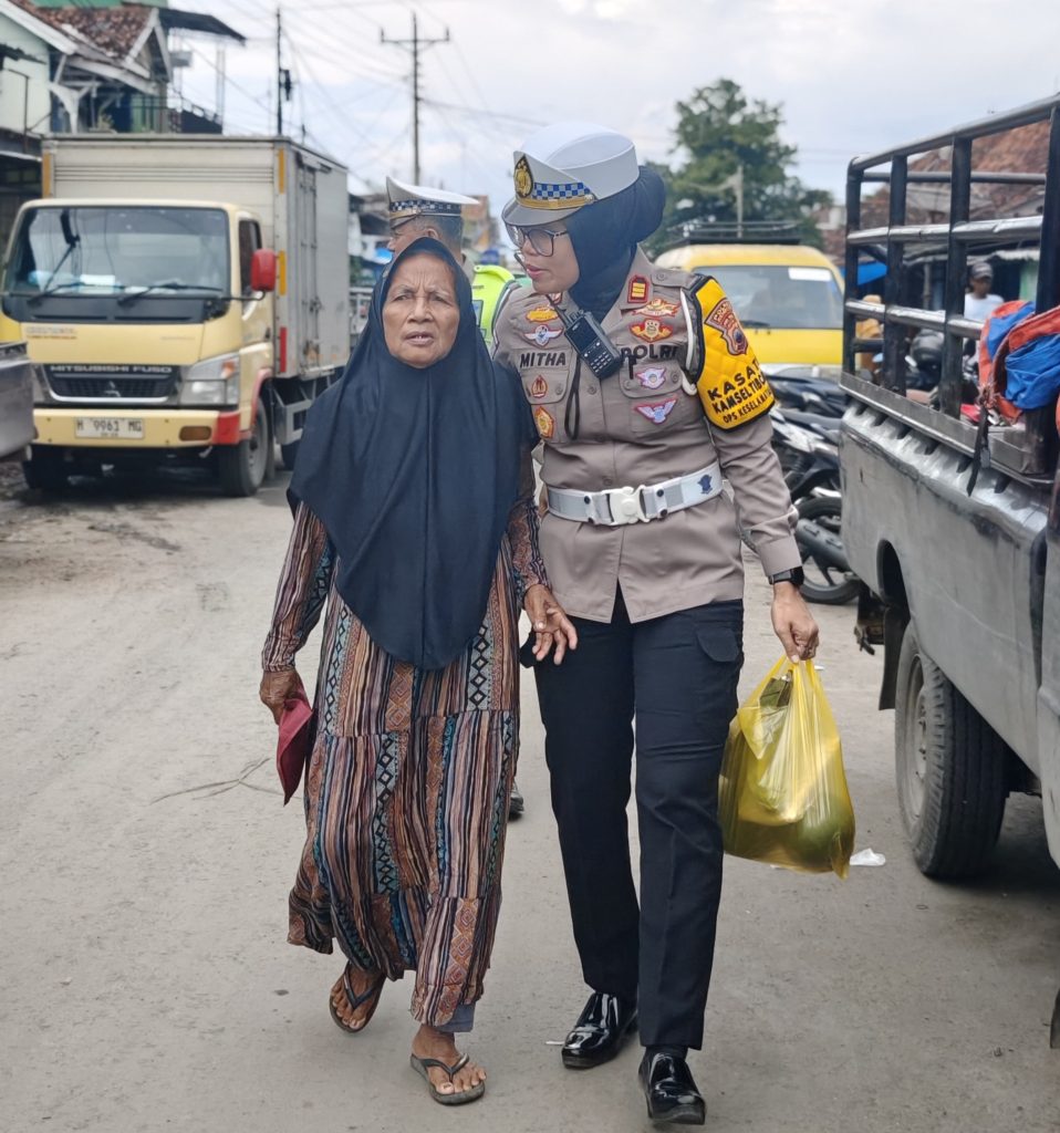 REMBANG – Sosok Polisi yang humanis dan dekat dengan masyarakat kembali ditunjukkan oleh Kasatlantas Polres Rembang AKP Ryan Mitha Pangesty, S.Tr.K.,S.I.K. saat membantu ibu-ibu membawa barang belanjaan di area pasar Kota Rembang, Selasa (10/2/2026).