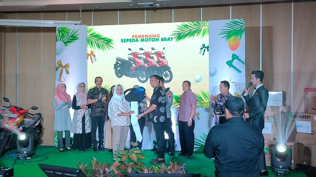 “Hadiah yang diundi sebanyak 367 hadiah, dengan hadiah utama 3 unit Sepeda Motor Honda Beat. Acara Pengundian Hadiah Arisan Berkah dilaksanakan pada hari Sabtu, 13 Januari 2024,” terangnya.