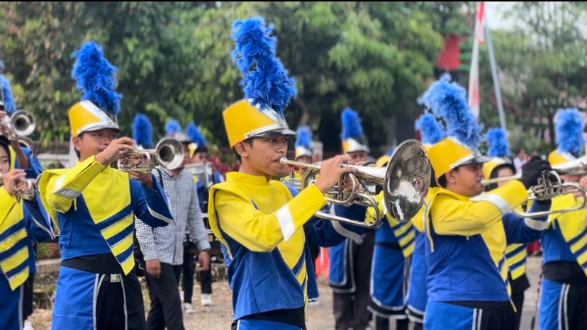 Marching Band SMK Al-Falah Bikin Pembukaan TMMD ke-128 Pati Kian Semarak PATI – Suasana pembukaan TNI Manunggal Membangun Desa (TMMD) Reguler ke-128 Tahun 2026 di Lapangan Desa Gunungpanti, Kecamatan Winong, Kabupaten Pati berlangsung meriah dan penuh semangat, Rabu (22/4/2026). Penampilan Marching Band SMK Al-Falah Winong menjadi salah satu suguhan yang mencuri perhatian dalam rangkaian acara tersebut. Sejak awal tampil, derap langkah para personel marching band yang kompak langsung mengundang decak kagum penonton. Iringan musik yang enerjik berpadu dengan formasi barisan yang rapi dan atraktif, menciptakan suasana yang hidup sekaligus membangkitkan semangat para tamu undangan dan masyarakat yang memadati lokasi acara. Marching band yang dipimpin oleh Edi, itu menampilkan berbagai variasi lagu dengan aransemen dinamis. Permainan alat musik perkusi, tiup, hingga koreografi gerakan yang selaras membuat penampilan semakin memukau. Tak sedikit warga yang mengabadikan momen tersebut menggunakan ponsel mereka. Kehadiran Marching Band SMK Al-Falah Winong tidak hanya menjadi hiburan semata, tetapi juga memberi warna tersendiri dalam pembukaan TMMD. Energi positif yang ditampilkan para pelajar tersebut dinilai mampu menambah semangat kebersamaan serta memperkuat nuansa kebanggaan terhadap generasi muda daerah. Antusiasme masyarakat terlihat tinggi sepanjang acara. Warga dari berbagai kalangan tampak memadati area lapangan sejak pagi hari untuk menyaksikan langsung jalannya pembukaan TMMD, termasuk penampilan seni dan hiburan yang disuguhkan. Komandan Kodim 0718/Pati Letkol Arm Timotius Yogi M.Han, selaku Dansatgas TMMD ke-128 menyampaikan apresiasi atas keterlibatan berbagai pihak dalam menyukseskan kegiatan tersebut, termasuk partisipasi para pelajar. “TMMD bukan hanya tentang pembangunan fisik, tetapi juga menjadi sarana mempererat kebersamaan antara TNI dan masyarakat. Partisipasi generasi muda seperti ini menjadi energi positif dalam mendukung keberhasilan program,” ujarnya. Menurutnya, keterlibatan pelajar dalam kegiatan TMMD menjadi bukti bahwa semangat gotong royong dan nasionalisme terus tumbuh di kalangan generasi muda. Hal ini sejalan dengan tujuan TMMD yang tidak hanya fokus pada pembangunan infrastruktur, tetapi juga pembangunan karakter dan sosial kemasyarakatan. Program TMMD sendiri merupakan wujud sinergi antara TNI, pemerintah daerah, dan masyarakat dalam mempercepat pembangunan di wilayah pedesaan. Melalui kegiatan ini, berbagai sasaran fisik maupun nonfisik dilaksanakan guna meningkatkan kesejahteraan masyarakat. Dengan semaraknya pembukaan TMMD ke-128 yang diwarnai penampilan Marching Band SMK Al-Falah Winong, diharapkan mampu menjadi awal yang baik bagi pelaksanaan program tersebut. Selain memperkuat kemanunggalan TNI dan rakyat, kegiatan ini juga diharapkan membawa dampak nyata bagi pembangunan dan kemajuan desa.