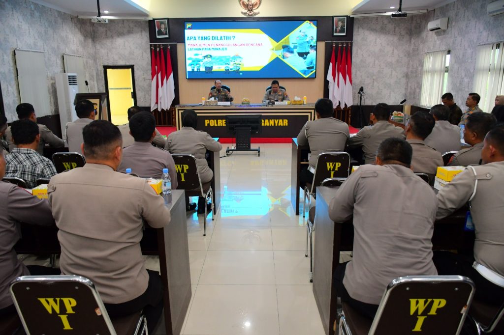 Pelatihan dipimpin langsung oleh Karoops Polda Jawa Tengah, Kombes Pol. Basya Radyananda, S.I.K., M.H., dan dihadiri Kapolres Karanganyar AKBP Dr. Hadi Kristanto, S.I.K., M.M., Wakapolres Kompol Miftakul Huda, serta para pejabat utama dari Polres Karanganyar, Sragen, Wonogiri, dan Sukoharjo. Hadir pula para Kapolsek dari wilayah rawan bencana seperti Tawangmangu, Jenawi, dan Ngargoyoso.