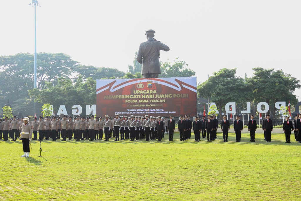 Di Mapolda Jateng, upacara berlangsung khidmat, diawali dengan menyanyikan lagu Mars Polri dan pembacaan sejarah singkat mengenai Hari Juang Polri. Dalam sejarahnya, Polri menjadi pelopor yang aktif terlibat dalam upaya mempertahankan kemerdekaan Republik Indonesia.