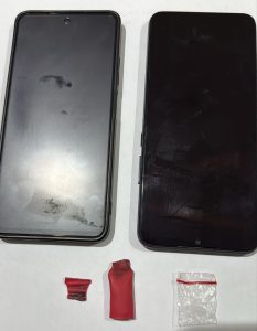 Dalam penggeledahan, petugas menemukan barang bukti berupa satu paket sabu seberat bruto ±1,13 gram yang dibungkus plastik klip dan disembunyikan dalam potongan sedotan warna merah. Selain itu, diamankan dua unit handphone masing-masing merk Infinix Hot 11 warna hitam dan Oppo A3X warna biru, serta satu unit sepeda motor Yamaha Mio GT warna merah yang digunakan pelaku.