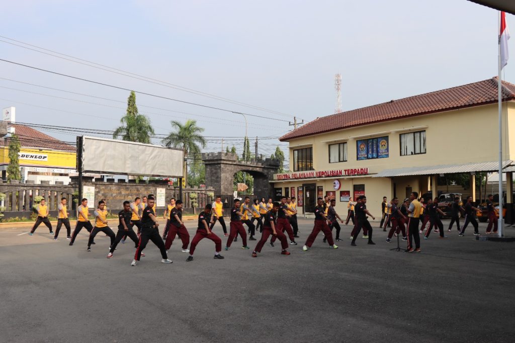 Pagi ini sesi olahraga diisi dengan kegiatan olahraga gerakan di tempat dan dilanjutkan dengan latihan beladiri bersama, adapun tujuan dari kegiatan ini adalah untuk meningkatkan kesehatan fisik dan juga sebagai sarana untuk meningkatkan lagi kekompakan dan semangat kerja yang tinggi personil Polres Mesuji