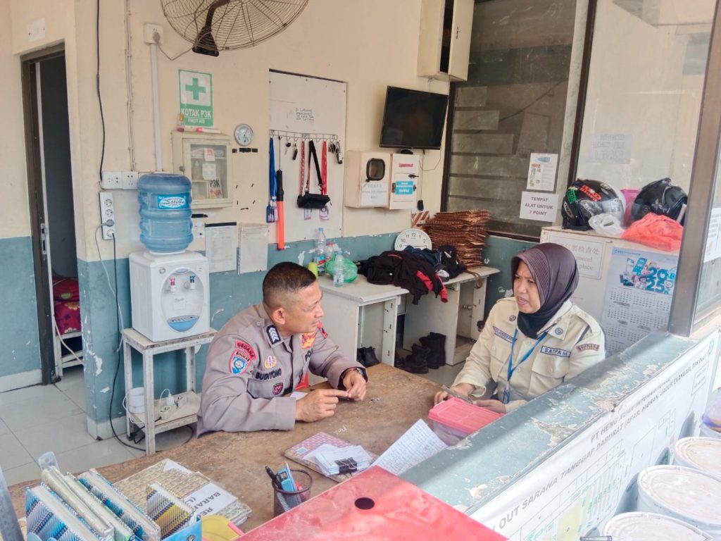 Kegiatan ini gelar oleh Bripka Budiyono dan personel Sat Binmas yang menyambangi pos keamanan perusahaan dan berdialog langsung dengan petugas keamanan (Satpam) yang berjaga.